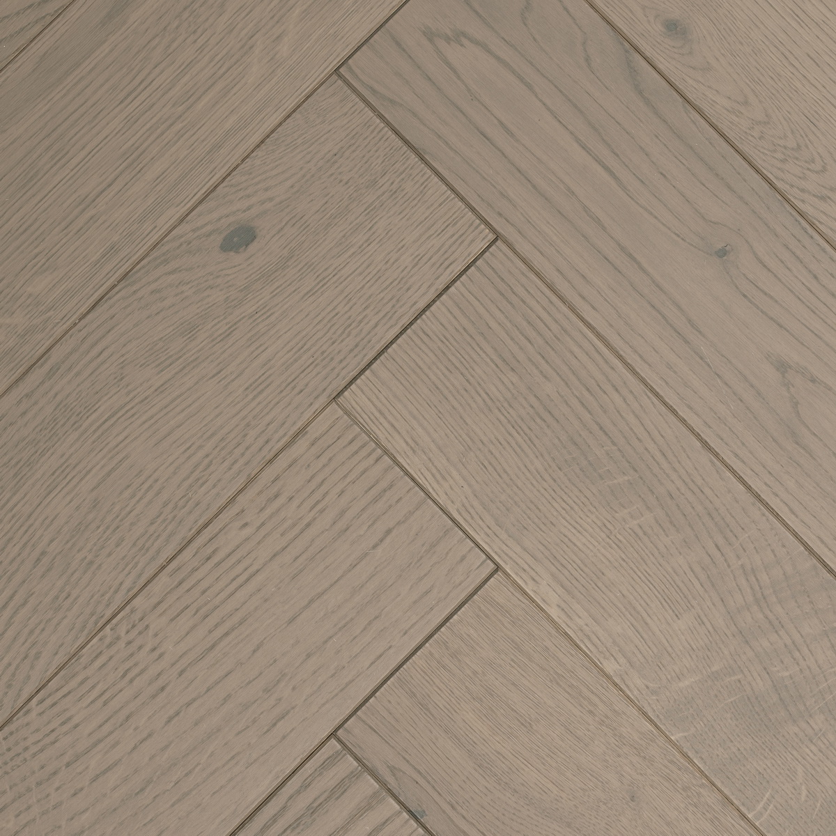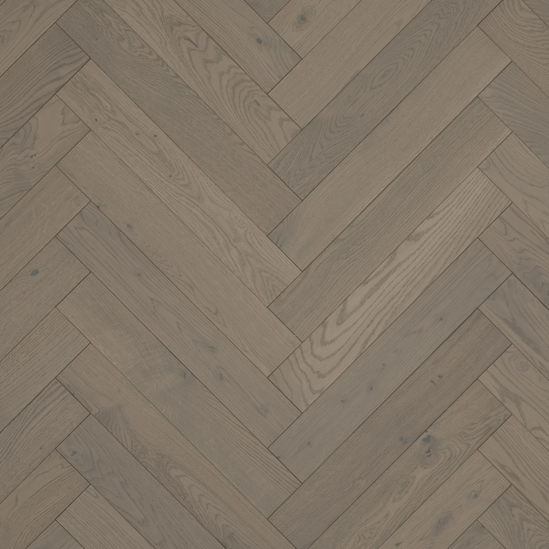 Инженерный паркет Английская ёлка из дуба с 4-сторонней фаской. Немного приглушенный оттенок пола станет отличной основой для яркого акцентного интерьера.